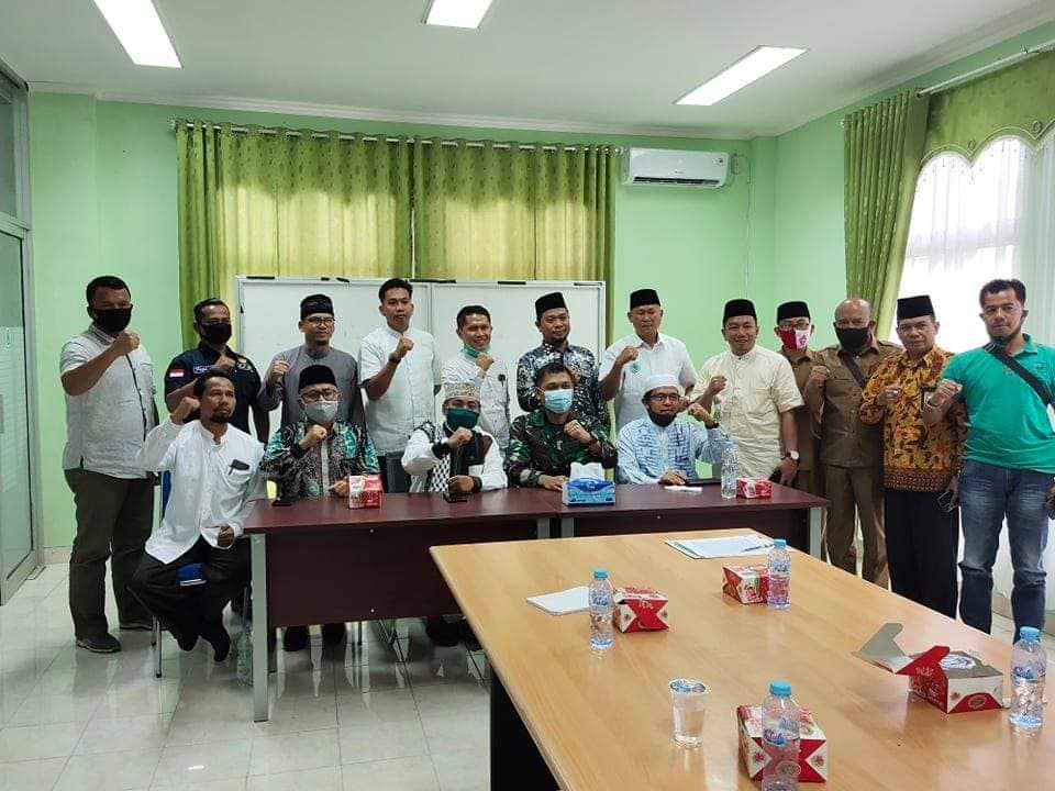 Ketua Umum Majelis Ulama Indonesia (MUI) Kab. Kampar, Dr. H. Mawardi M. Saleh, Lc., MA dan sejumlah Pengurus menerima kunjungan silaturrahim Komandan Distrik Militer (Dandim) 0313/KPR, Letkol Inf. Leo Octavianus M. Sinaga, S. Sos, M. I. Pol, Selasa (25/8/2020).Ketua Umum MUI Kab. Kampar, Dr. H. Mawardi M. Saleh, Lc., MA mengucapkan terima kasih karena sudah datang ke Sekretariat MUI Kab. Kampar. “Terima kasih sudah datang, mudah-mudahan Allah berikan kemudahan,” kata Buya Mawardi. Dalam sambutannya Buya Mawardi menjelaskan tentang kondisi kehidupan keagamaan di Kabupaten Kampar dan berharap Dandim yang baru dapat bekerjasama dengan para ulama dalam meningkatkan kondusifitas kehidupan sosial dan agama di Kab. Kampar. “Pembangunan apapun yang dilakukan, kunci kesuksesan pertama dalam membangun peradaban adalah rasa aman. Sebagaimana doa yang dipanjatkan oleh Nabi Ibrahim ketika pertama kali memasuki kota Mekah”, ungkap Buya Mawardi.Sementara menurut Dandim 0313/KPR, Letkol Inf. Leo Octavianus M. Sinaga, S. Sos, M. I. Pol mengatakan, kedatangannya tersebut, selain manjalin silaturrahmi juga untuk memperkenalkan dirinya sebagai Dandim Baru di Kampar serta untuk menjalin hubungan baik dengan para tokoh agama yang ada di Kabupaten Kampar.