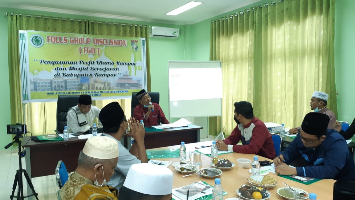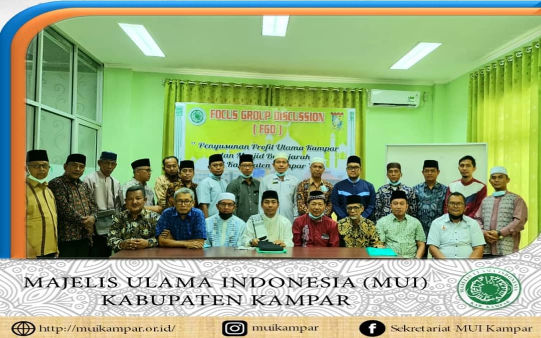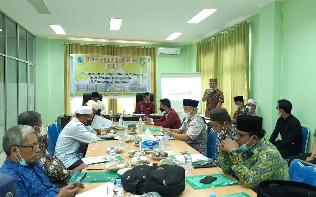 BANGKINANG – Majelis Ulama Indonesia (MUI) Kabupaten Kampar menyelenggarakan kegiatan Focus Group Discussion (FGD) Penyusunan Biografi Ulama Kampar dan Dokumentasi Masjid Bersejarah di Kabupaten Kampar (24/03/2021)