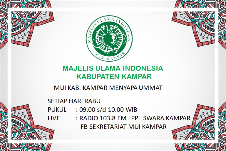 Bangkinang – Majelis Ulama Indonesia (MUI) Kabupaten Kampar akan menyapa umat melalui Radio Lembaga Penyiaran Publik Lokal (LPPL) Swara Kampar di Frekuensi 103.8 FM, Radio Markaz Islami 88.0 FM serta dapat juga disaksikan Livestreaming di FB Sekretariat MUI Kampar dalam Acara MUI Kampar Menyapa Ummat.”