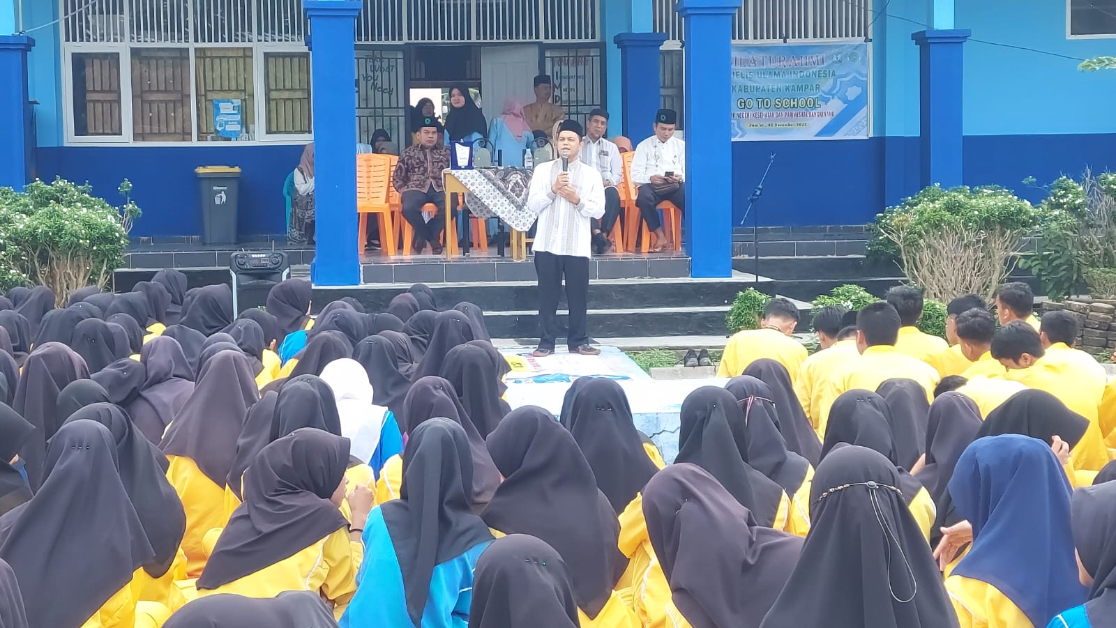 Ketua Komisi Pendidikan MUI Kampar, Martinus dalam kesempatan tersebut menerangkan bahwasanya kegiatan pagi ini adalah kegiatan MUI Goes to School yang keenam yang kita lakukan pada tahun ini. Pada hari ini sebagai narasumber atau pembicara langsung kita bawa Sekum MUI Kampar Syamsuatir. Kegiatan ini sebagai bukti nyata MUI memberikan edukasi terutama pembinaan akhlak terhadap pelajar di Kabupaten Kampar
