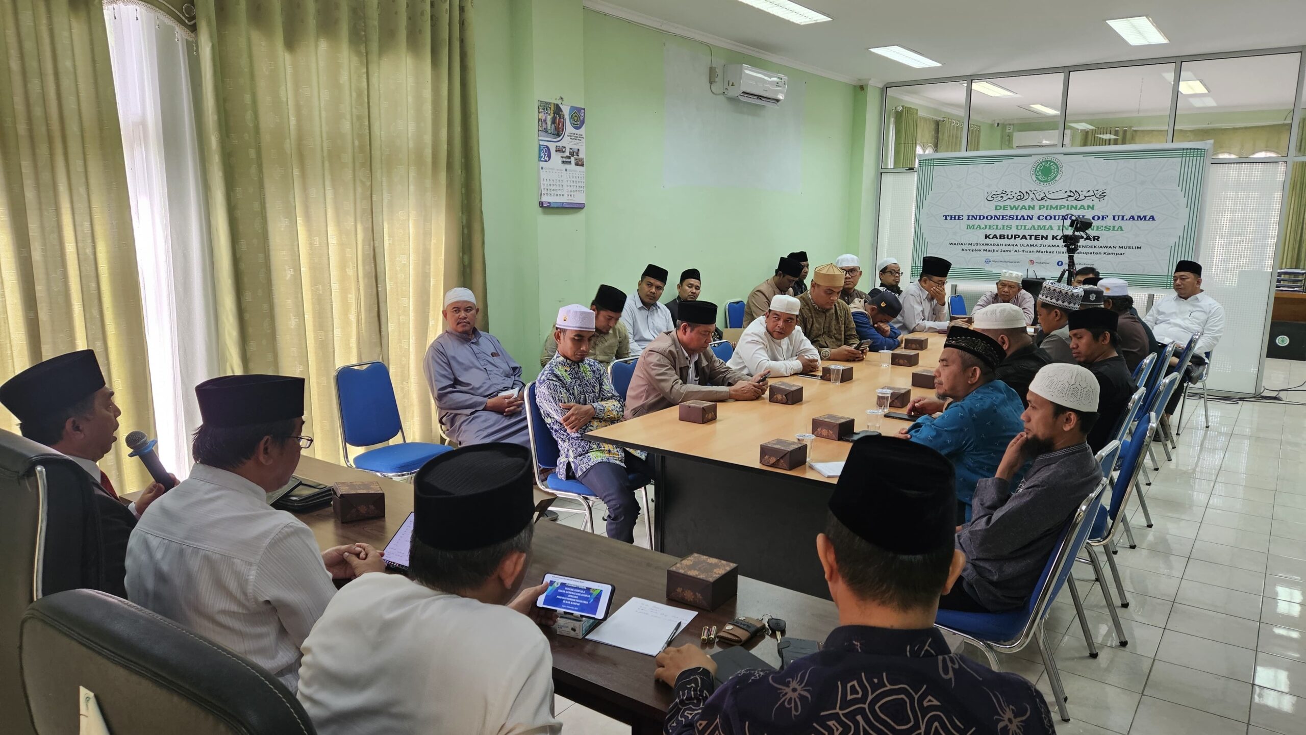 Bangkinang, 19 Desember 2024 – Majelis Ulama Indonesia (MUI) Kabupaten Kampar bekerja sama dengan Kantor Kementerian Agama (Kemenag) Kabupaten Kampar serta pimpinan pondok pesantren se-Kabupaten Kampar menggelar kegiatan bertajuk “Menggagas MGMP Nahu Sharaf” pada Kamis, 19 Desember 2024. Acara ini diselenggarakan di ruang rapat Kantor MUI Kabupaten Kampar dan dihadiri oleh berbagai pihak terkait, termasuk narasumber yang kompeten di bidangnya.
